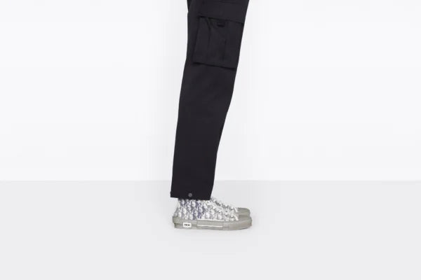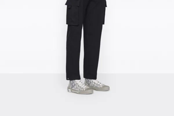 The B23 League high-top sneaker is set apart by its layering of transparent paneling and white and black Dior Oblique canvas. Essential details, such as eyelets and a lace-up front, a white rubber sole, a rounded and reinforced toe as well as a rear tab recall the codes of the classic high-top style. The sneaker is further enhanced with contrasting details on the sides, including a Dior signature, and pairs easily with any casual outfit.